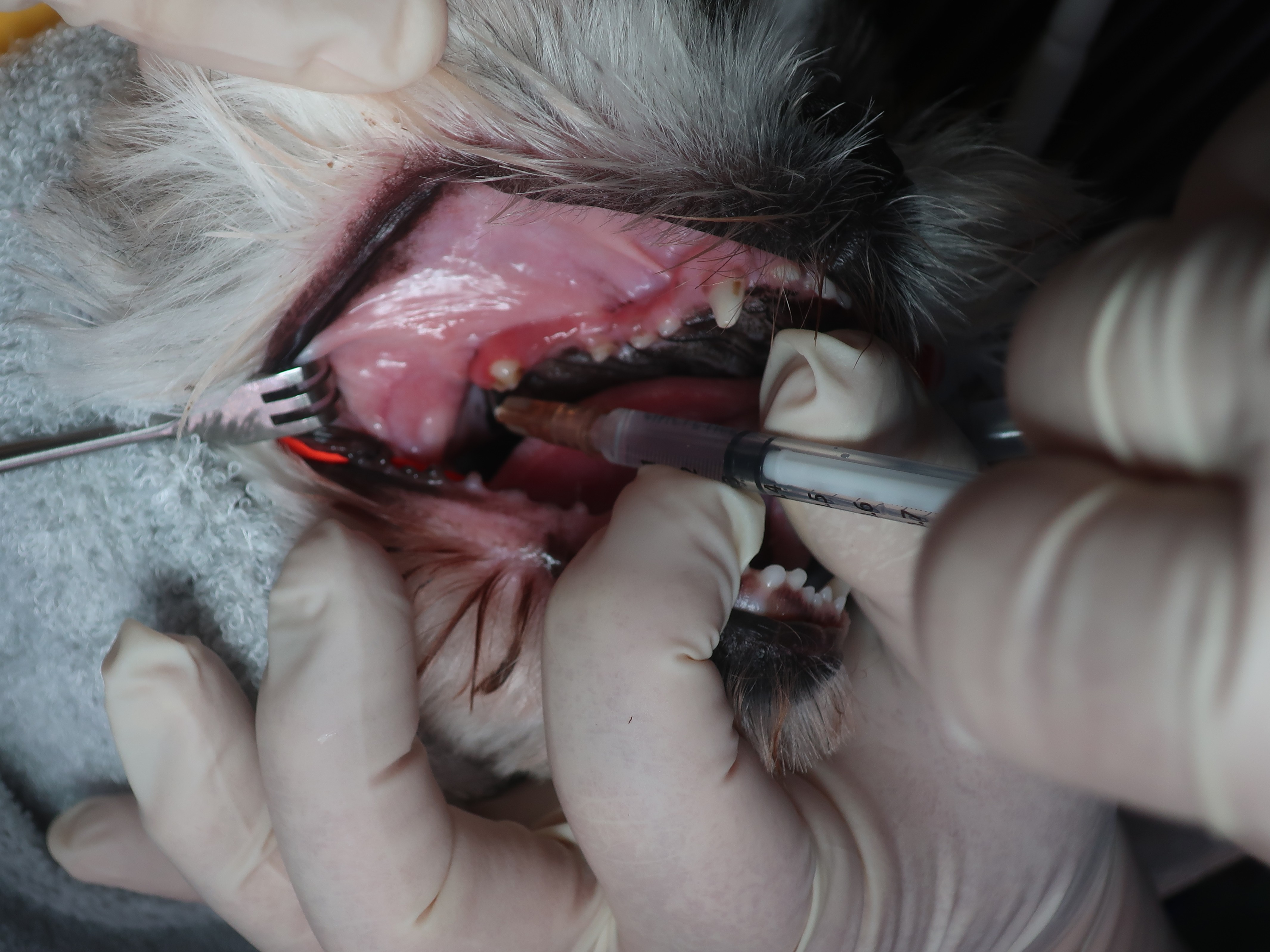 歯肉が増生し、さらに歯肉の発赤が起こっていましたので、切除を行うこととしました。