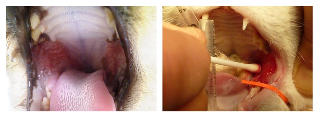 初期症状は、口臭、歯肉の発赤など歯周病と似ていますが、進行すると激しい痛みから、よだれ、痛みによる食欲不振や体重減少、歯肉や粘膜からの出血、歯肉粘膜の増殖、毛づくろいが出来なくなるなどの症状がでます。