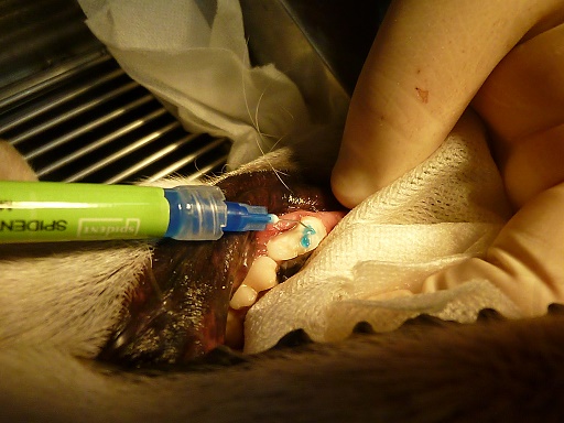 歯石はほとんどありませんでしたが、患部の歯肉が腫れ、出血も確認されました。