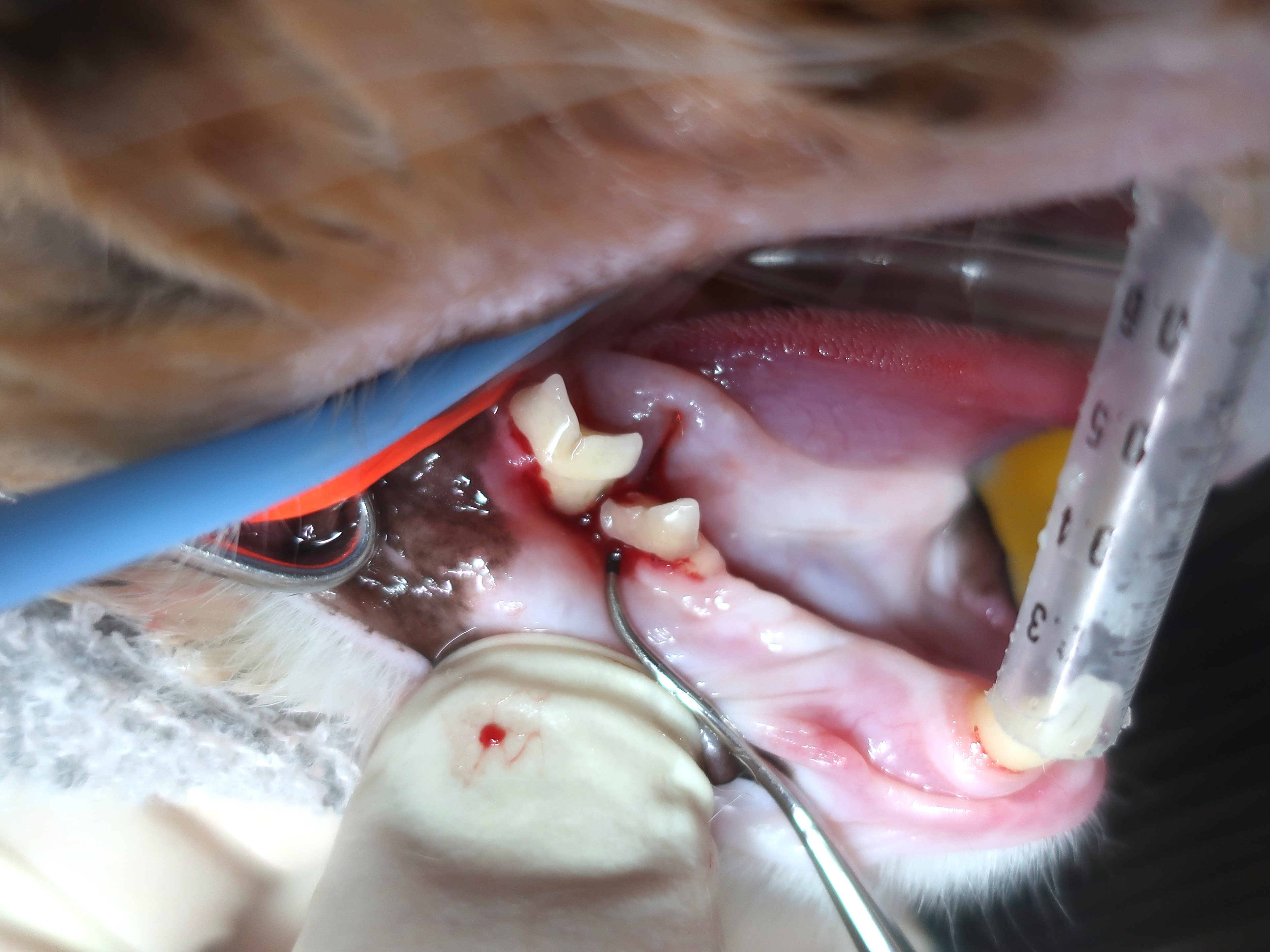 今回の処置は、右下顎第2前臼歯・第1後臼歯の抜歯を行いました。