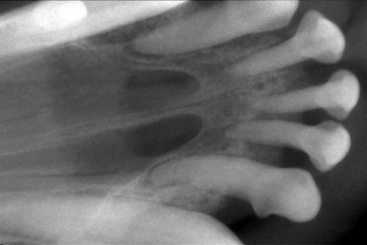 写真では歯を支える部分の骨がとても少ないことが分かります。
