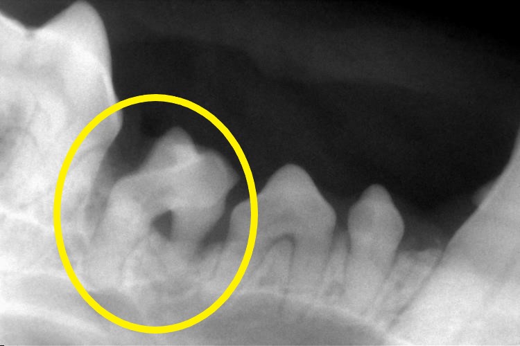〇印の歯は歯槽骨が溶け、ぐらついていました。