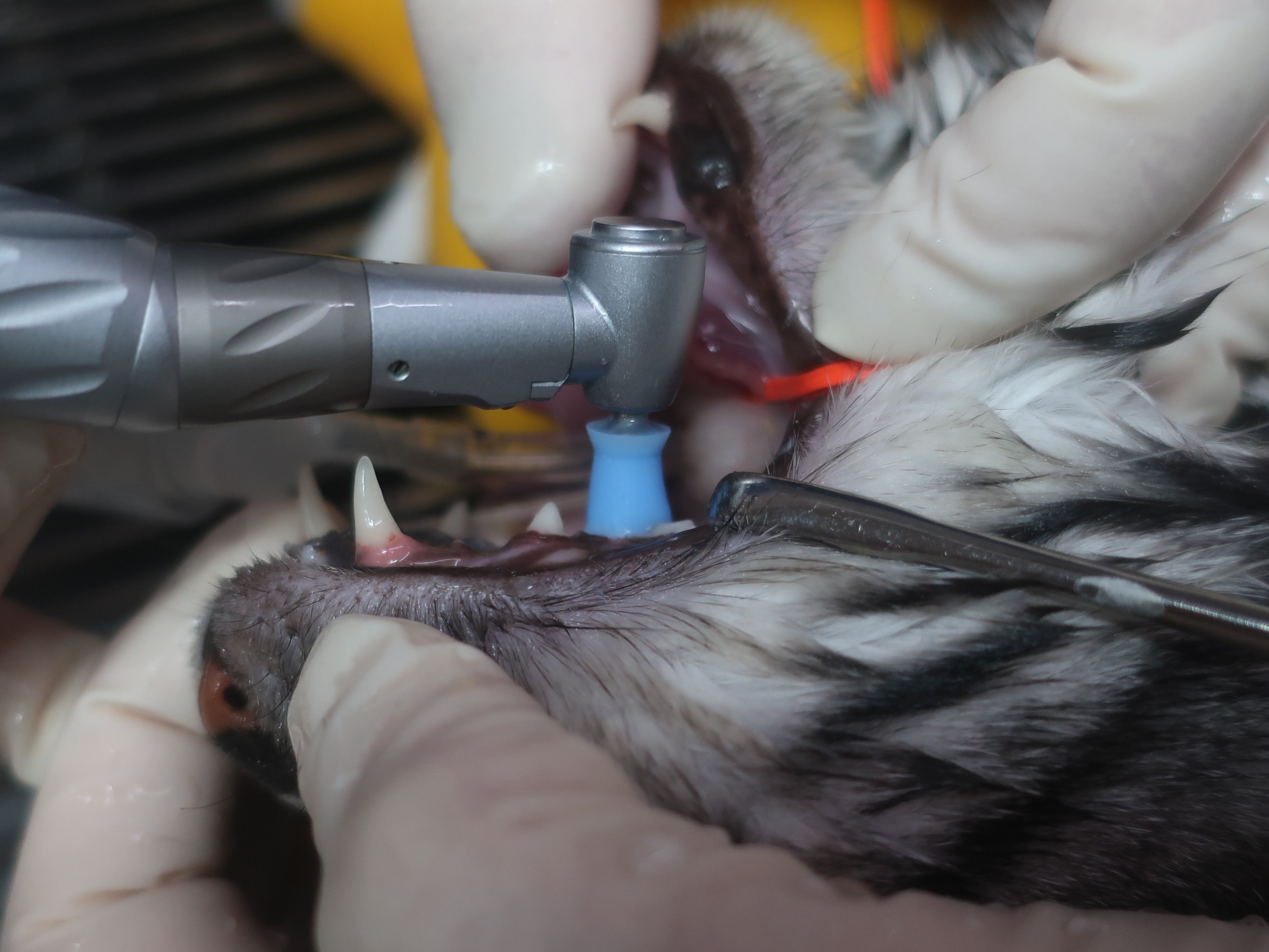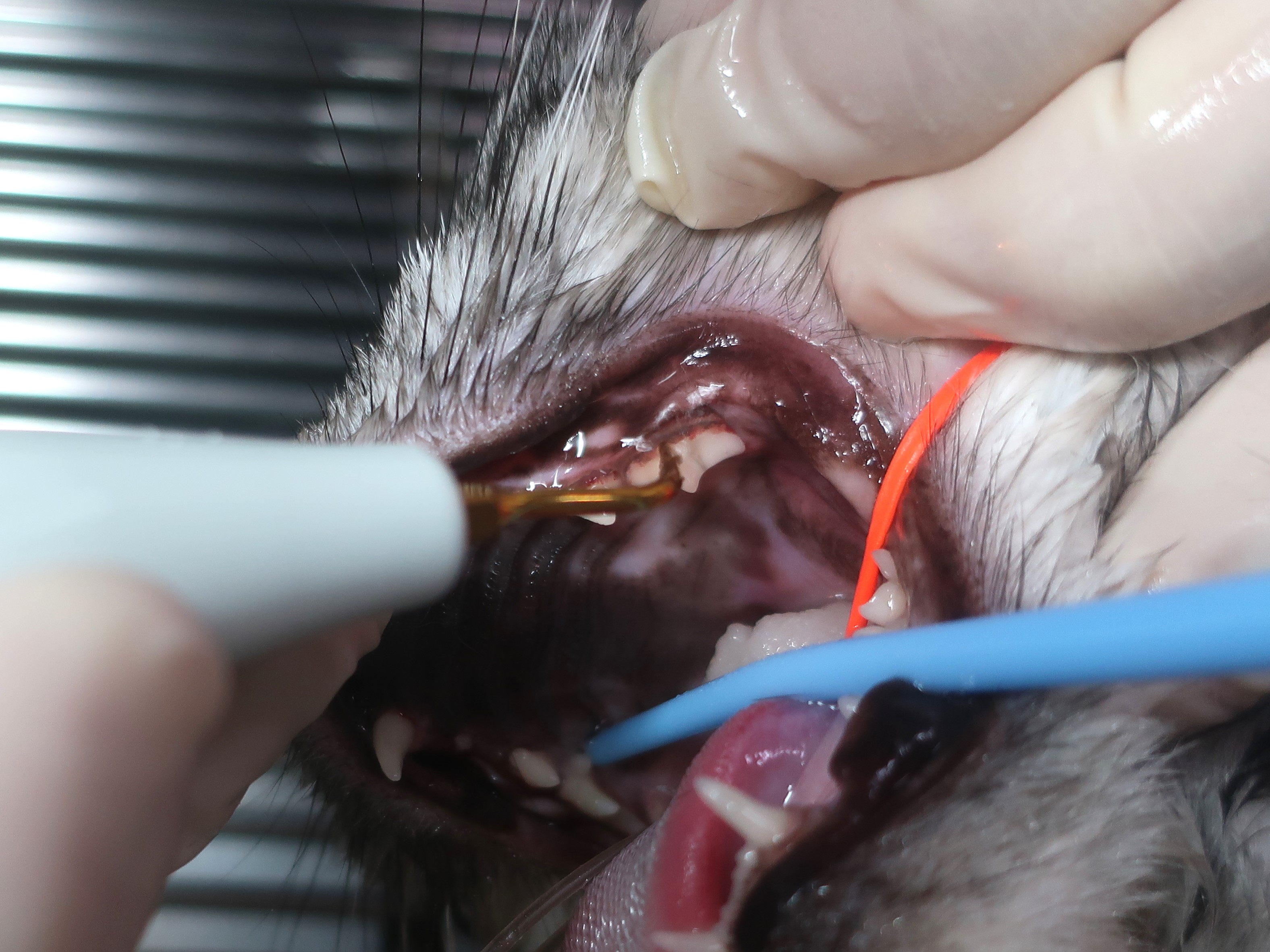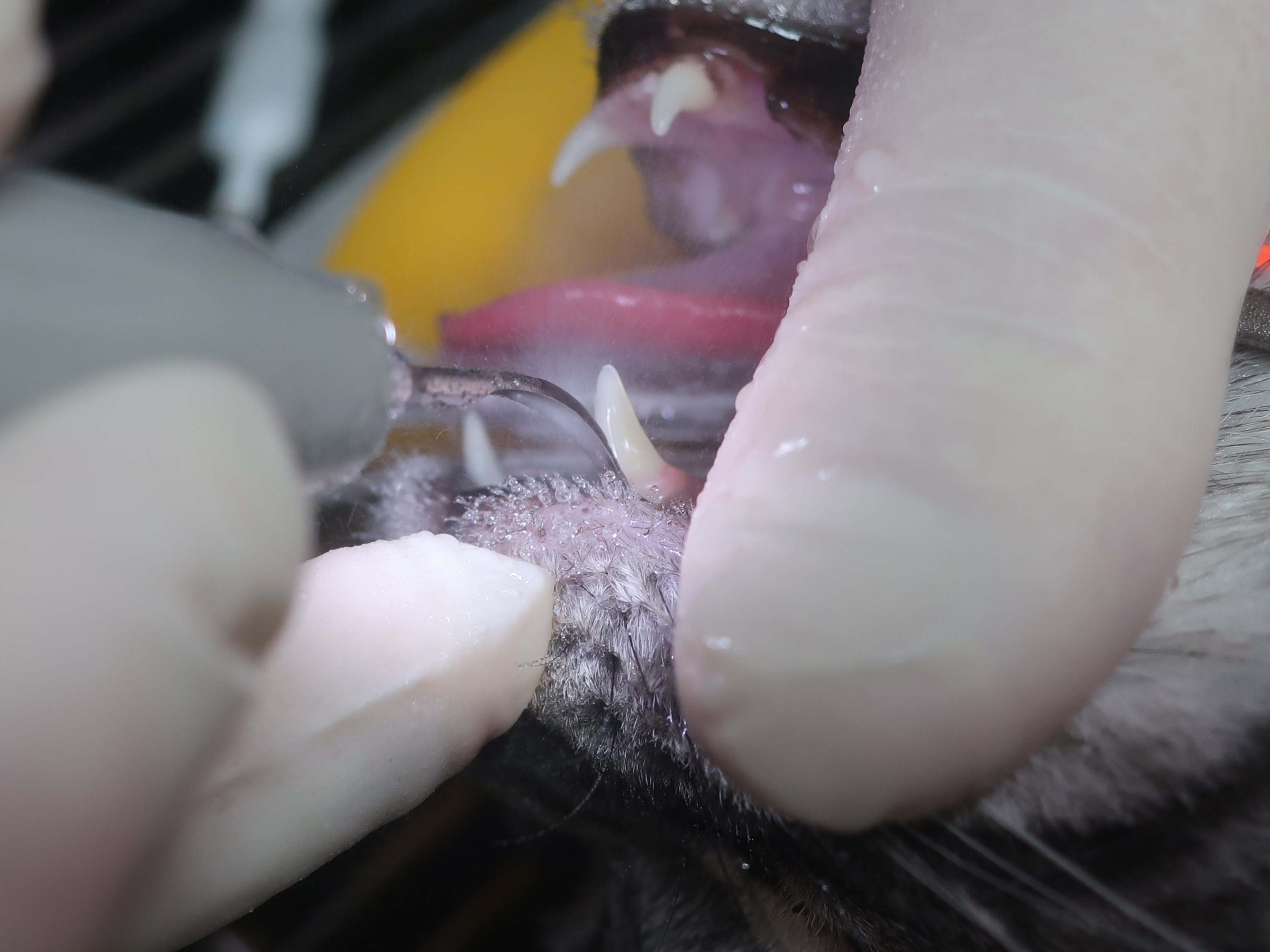 口腔内を確認すると、左右上顎の臼歯に歯垢・歯石が多く、